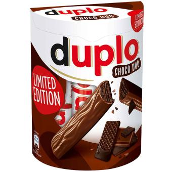 Waarschijnlijk de langste praline ter wereld. duplo is al jaren de bestverkochte chocoladereep van Duitsland. Het bestaat uit flinterdunne wafels en een fijne nougatcrème omhuld met heerlijke melkchocolade. Het smaakt onweerstaanbaar fijn en licht krokant voor alle gelegenheden. Trakteer uzelf op de kleine specialiteit voor tussendoor, die de smaakpapillen op een bijzondere manier verwent. Inhoud verpakking: 10 stuks a 18 gram.