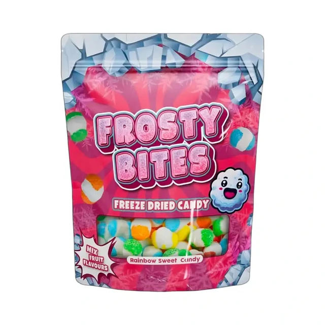Deze gevriesdroogde snoepjes combineren levendige regenboogkleuren met een opwindend zoete smaak. Dankzij het speciale vriesdroogproces zijn de snoepjes heerlijk licht en knapperig, maar behouden ze hun intense fruitsmaak. Elke hap zorgt voor een tintelende combinatie van zoet en zuur perfect voor iedereen die van bijzondere lekkernijen houdt.