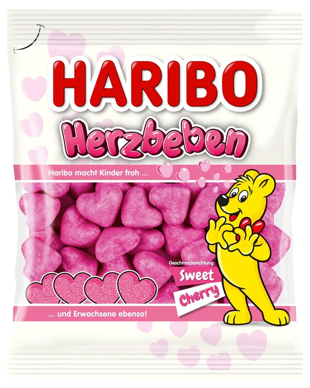 Snack naar hartenlust! Met Haribo kersenhartjes roze kun je echt je hart laten zien. De heerlijke harde marshmallowharten smaken fruitig naar kersen en zijn heerlijk zacht van smaak. Een knapperig laagje suiker maakt de zoete bites onweerstaanbaar lekker.
