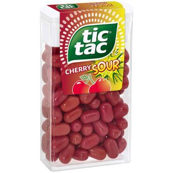 De Tic Tac Cherry Sour 54 gram brengt fruitige frisheid met een pittige, zure kersensmaak aan de beroemde kleine dragees. Elke tic tac biedt een verfrissende, lichtzure toon die perfect is voor iedereen die van de intense smaak van kersen houdt. Ideaal als verkwikkend tussendoortje voor onderweg of als zoete kick van frisheid tussendoor deze tic tacs zorgen voor een spannende appeltraktatie die tintelt op de tong!